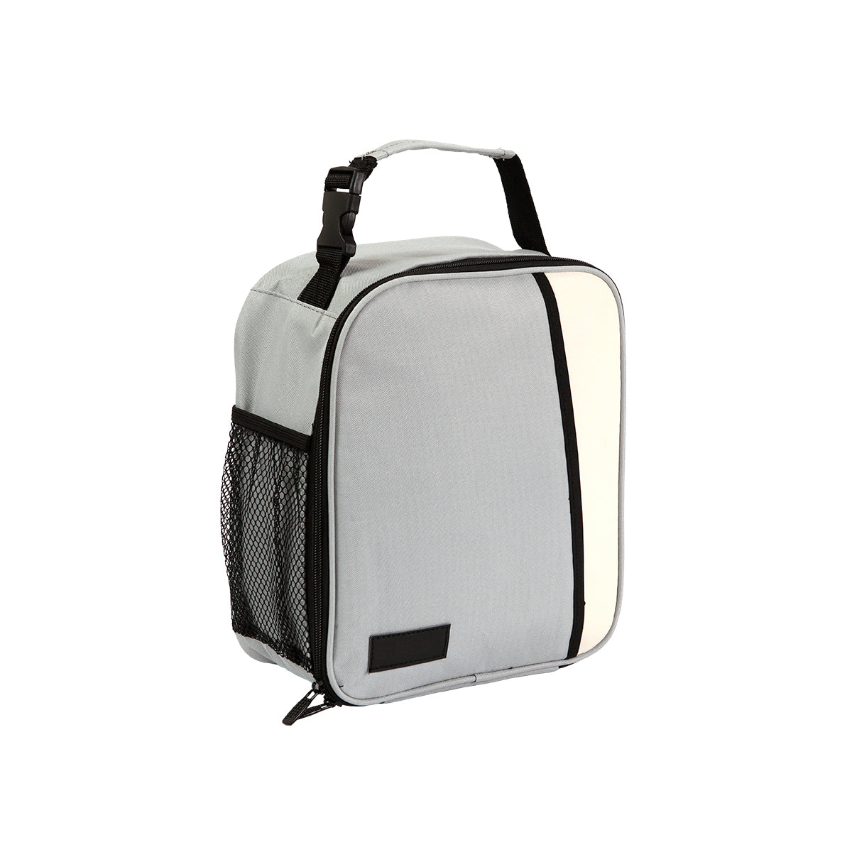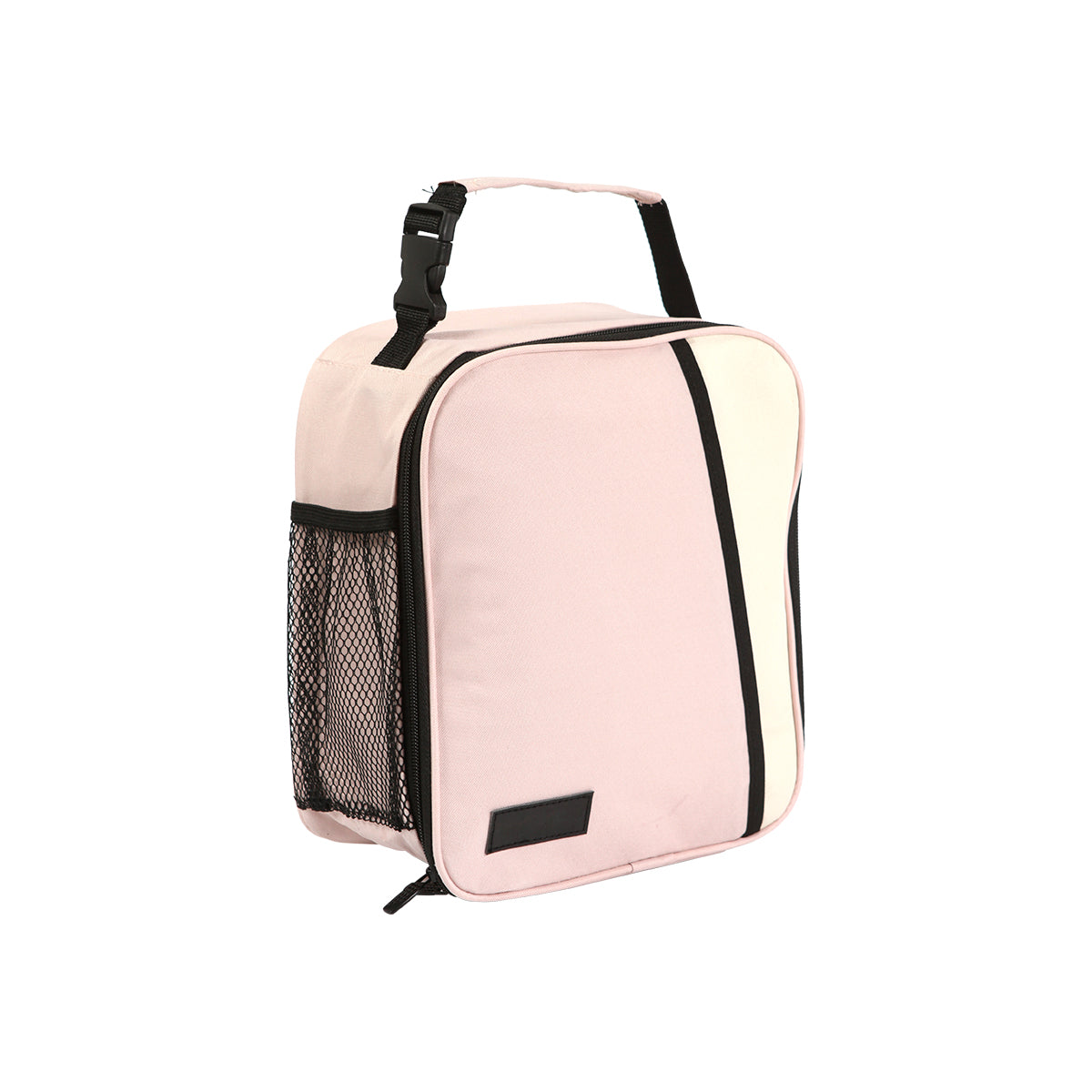 lonchera térmica fabricada en poliéster y papel aluminio, con cubierta de curpiel y diseño bicolor. incluye asa con broche ideal para colgarla a tu mochila, cuenta con una bolsa de maya lateral, bolsa frontal y un compartimento principal con cierre metálico. perfecta para transportar alimentos y conservarlos frescos.