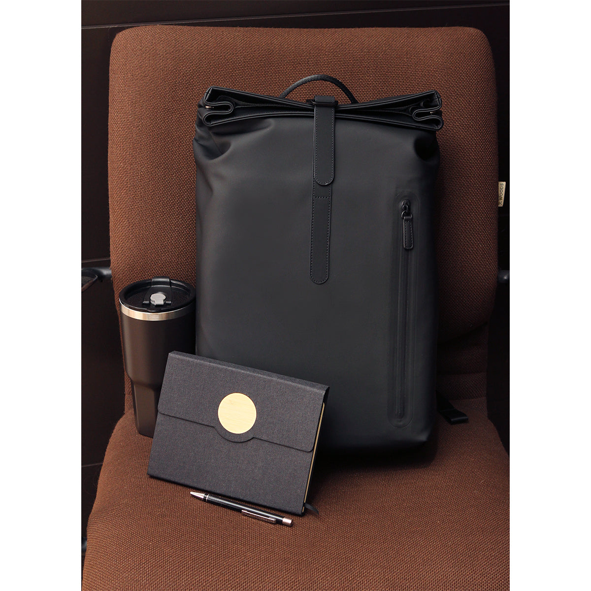 mochila para laptop fabricada en curpiel y poliéster, cuenta con un compartimento principal con bolsillos internos para los esenciales y una sección digital que se ajusta a una laptop de 15.6 pulgadas, herrajes metálicos de alta calidad asegura durabilidad, mientras que el diseño minimalista mantiene un aspecto pulido sin adornos innecesarios. elaboradas con material pu resistente a salpicaduras y duradero, estas bolsas combinan lujo con practicidad, ofreciendo una sensación de alta gama que resiste el desgaste diario.