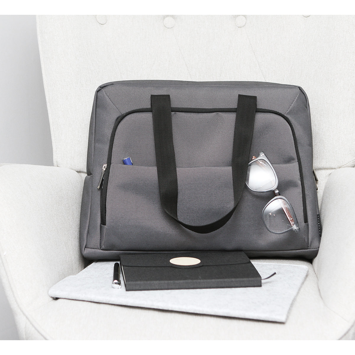 portafolio para laptop fabricada en poliéster, con relleno de espuma de pe. incluye compartimento principal, secundario, además de bolsillo para documentos y dos asas.