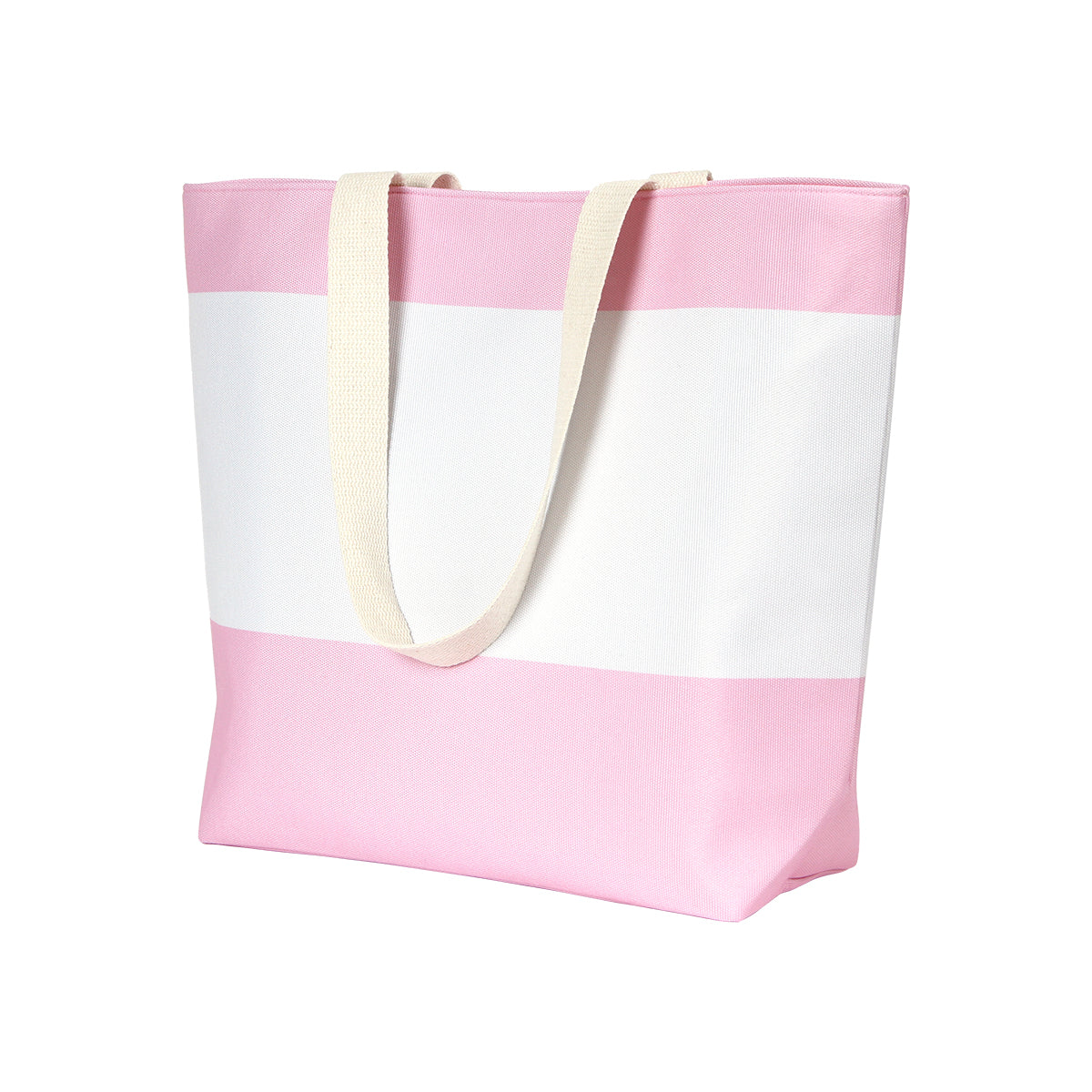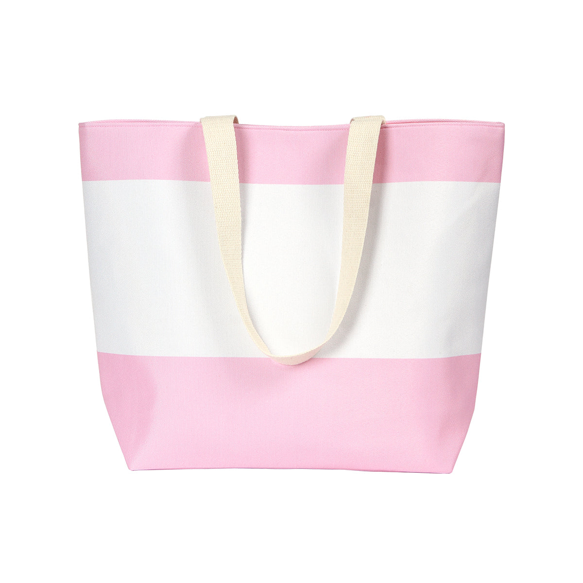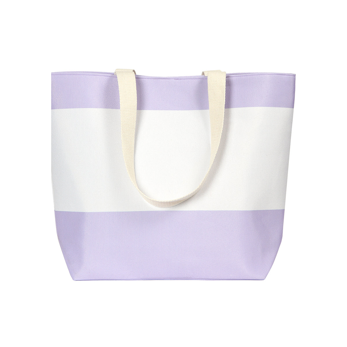 bolsa de mano fabricada en tela de algodón y poliéster. incluye dos asas y diseño a rayas. su espacio y diseño son óptimos para guardar diversidad de objeto. su diseño en colores primaverales le hace vistosa.