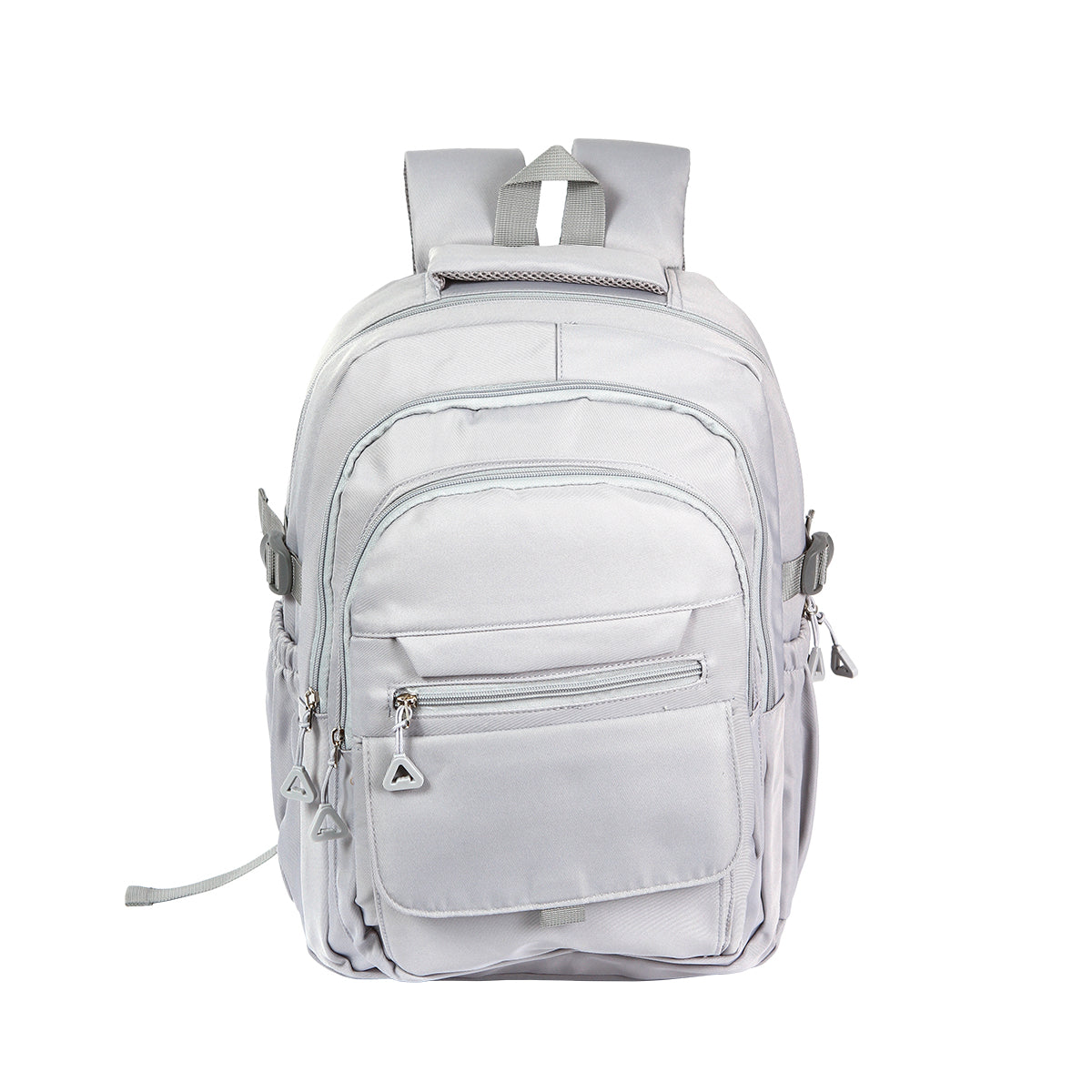 mochila confeccionada en poliéster, con un bolsillo principal con cremallera, cuatro bolsillos frontales con cremallera y dos bolsillos laterales extensibles. correa para espalda y hombro acolchada con espuma y malla para reducir el estrés.