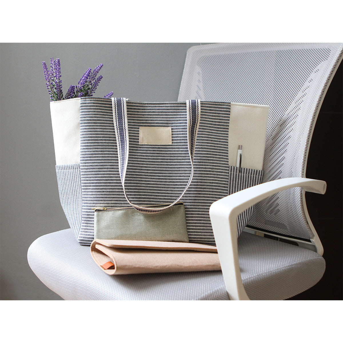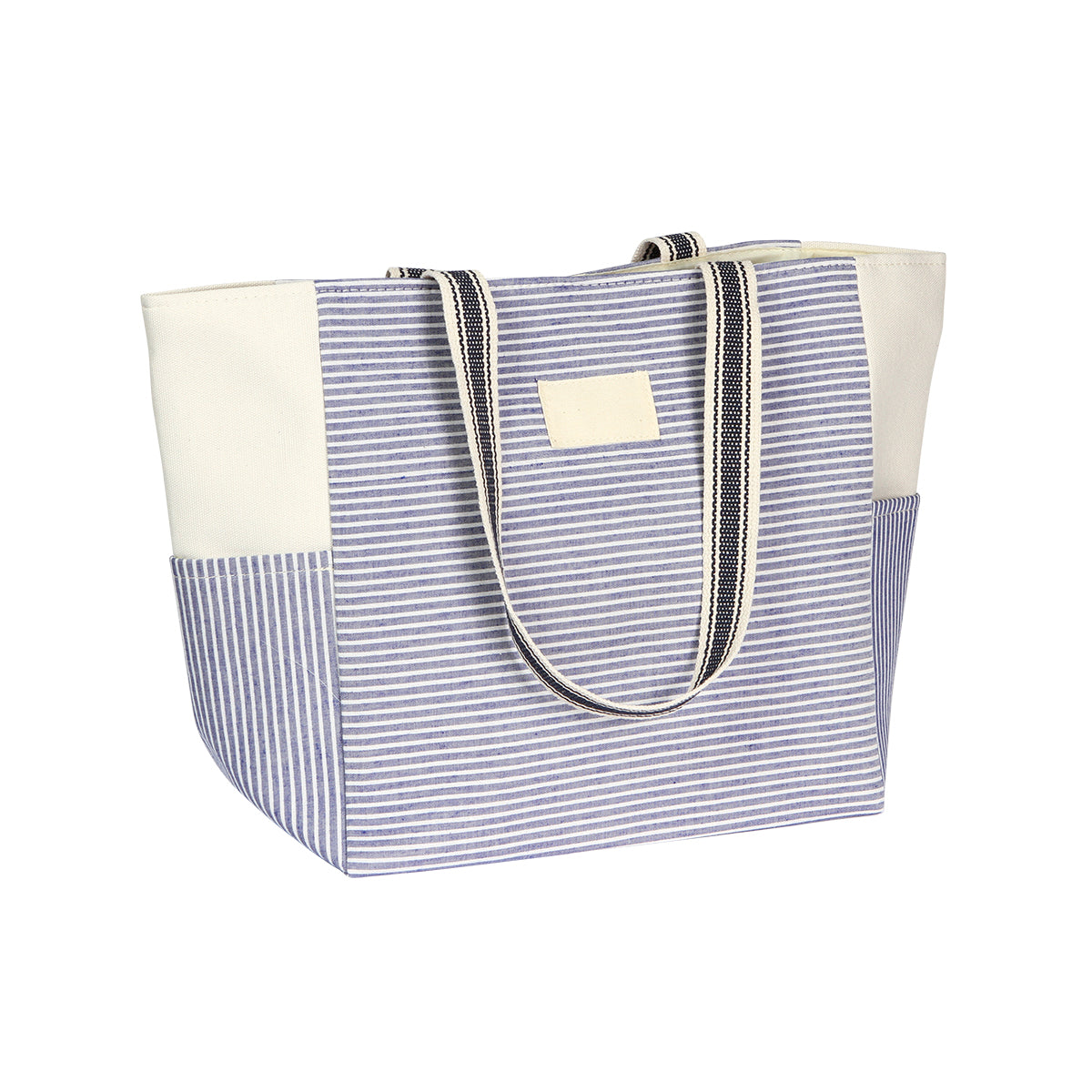bolsa ideal para playa fabricada en algodón y poliéster, en la parte interna tiene un forro hecho de poliéster. cuenta con asas y bolsas exteriores.