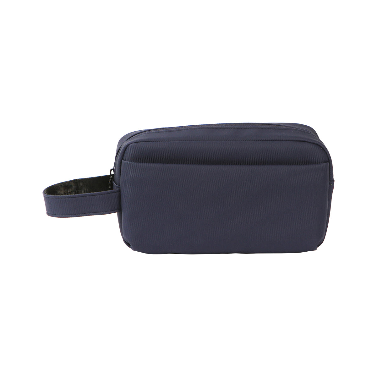 cosmetiquera fabricada en tela tipo oxford con acabado a prueba de agua. dentro incluye un forro tipo diamante. con un compartimento principal con cierre y una agarradera lateral para su fácil manejo.