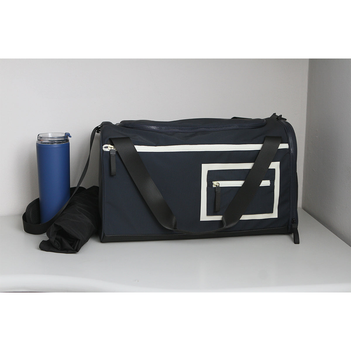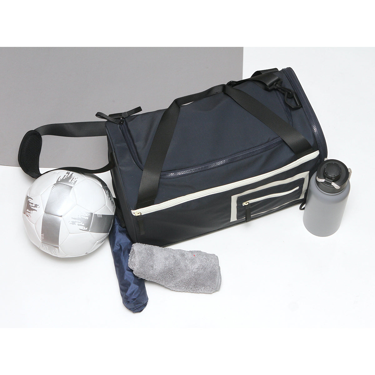 maleta tipo duffel fabricada en poliéster cuenta con un compartimento principal con forro completo igualmente de poliéster y bolsillo elástico, un bolsillo frontal con cremallera y un bolsillo pequeño con cremallera, un compartimento lateral, asas de cincha en la parte superior correa de hombro ajustable.