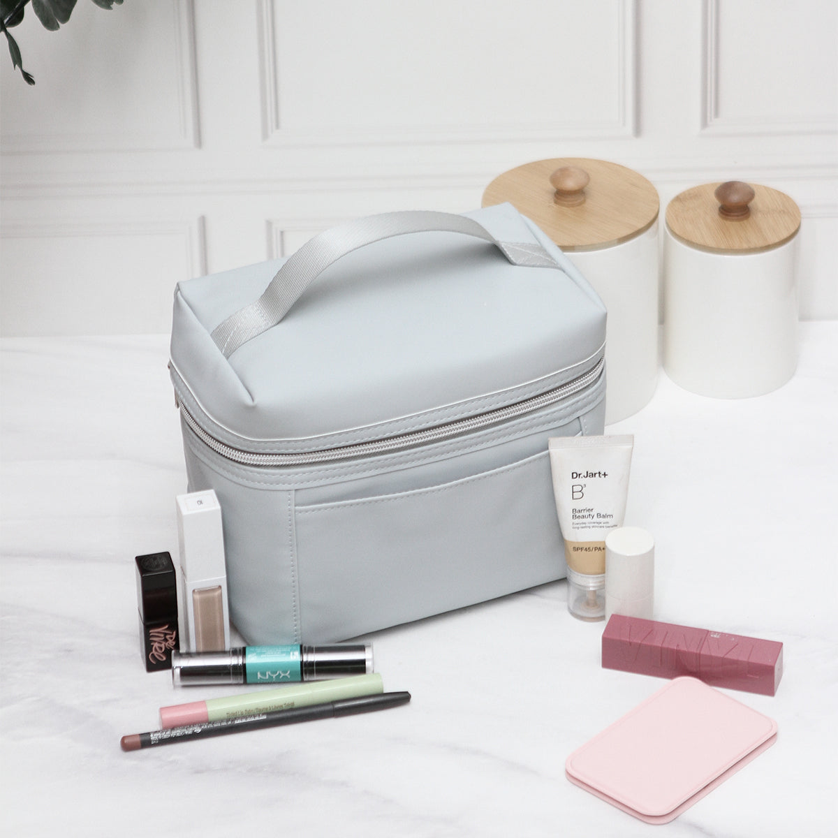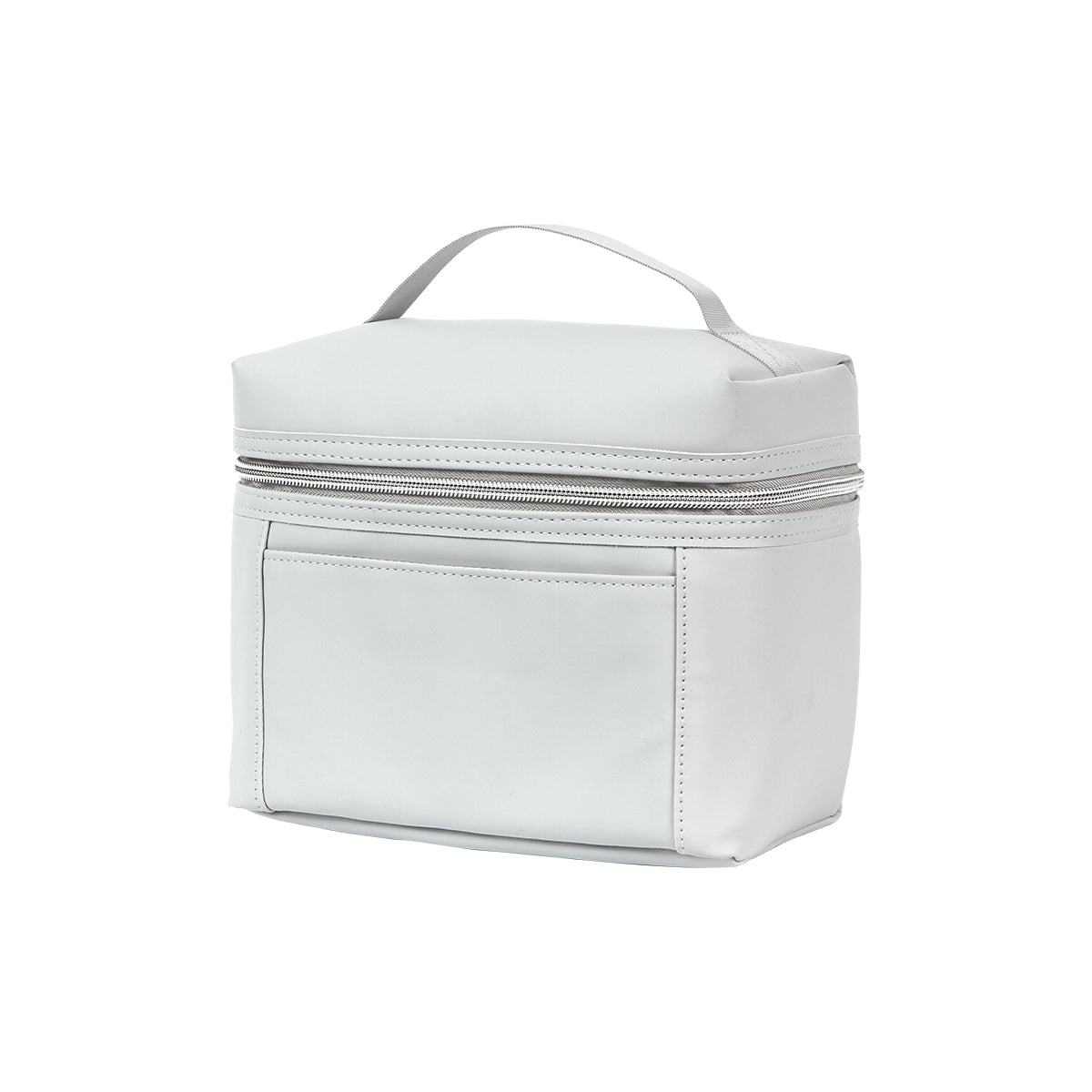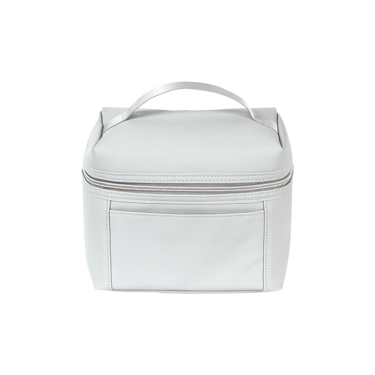 hielera / cosmetiquera fabricada en cuero sintético (pu), polietileno y forro de peva. cuenta con un compartimento principal con cremallera, un asa en la parte de arriba y una bolsa frontal más pequeña. es un accesorio práctico y elegante que ayuda a organizar y transportar productos varios de manera cómoda y segura.