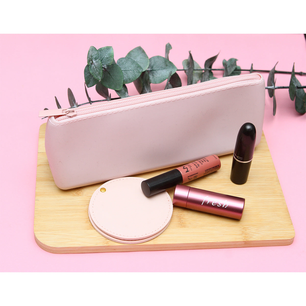 lapicera fabricada en silicón con acabado rubber. cuenta con un compartimento principal con cierre. este artículo gracias a su tipo de material es moldeable y su tamaño compacto la hace bastante útil y fácil de transportar.