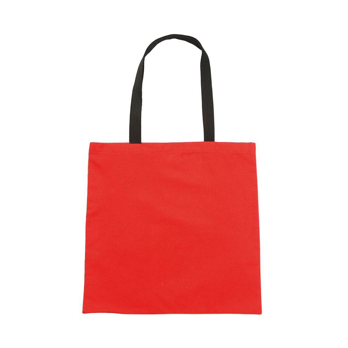 bolsa fabricada en algodón y poliéster. cuenta con dos asas superiores, estas están lo suficientemente largas para cargar como bolsa de hombro. de un solo color con asas color negro.