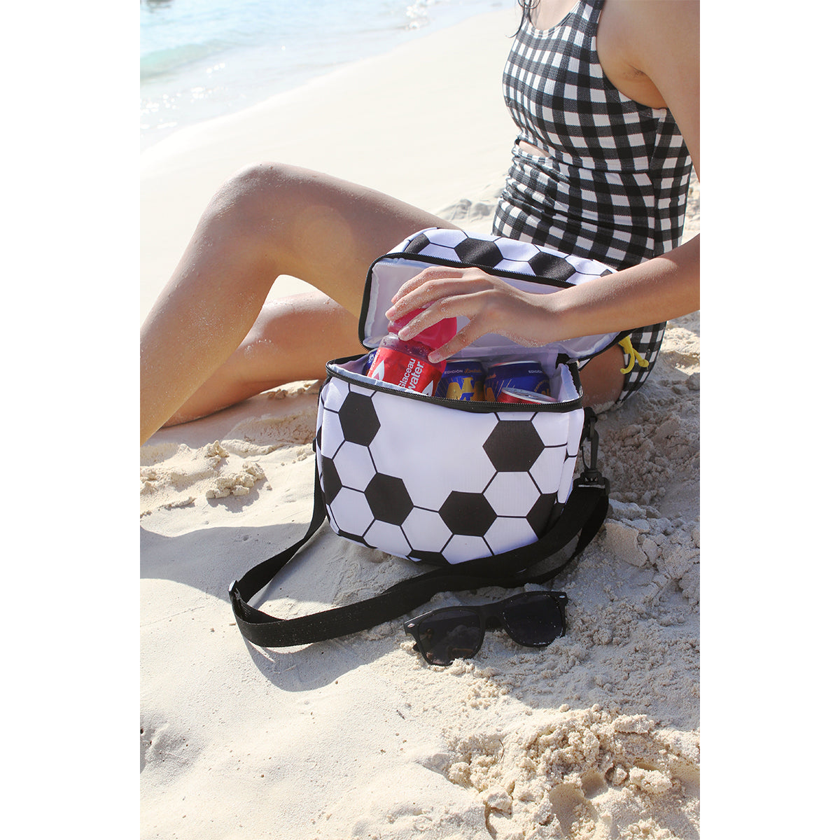 mantén tus bebidas y alimentos frescos por más tiempo con esta hielera fabricada en poliéster resistente y equipada con un práctico forro de peva impermeable. su diseño divertido en forma de balón la hace perfecta para los amantes del deporte y para llevar a picnics, juegos o cualquier salida al aire libre. cuenta con un asa superior y una correa ajustable. con capacidad de 8 litros. compacta, ligera y fácil de transportar, es el accesorio ideal para mantener tu refrigerio en óptimas condiciones con estilo y comodidad.