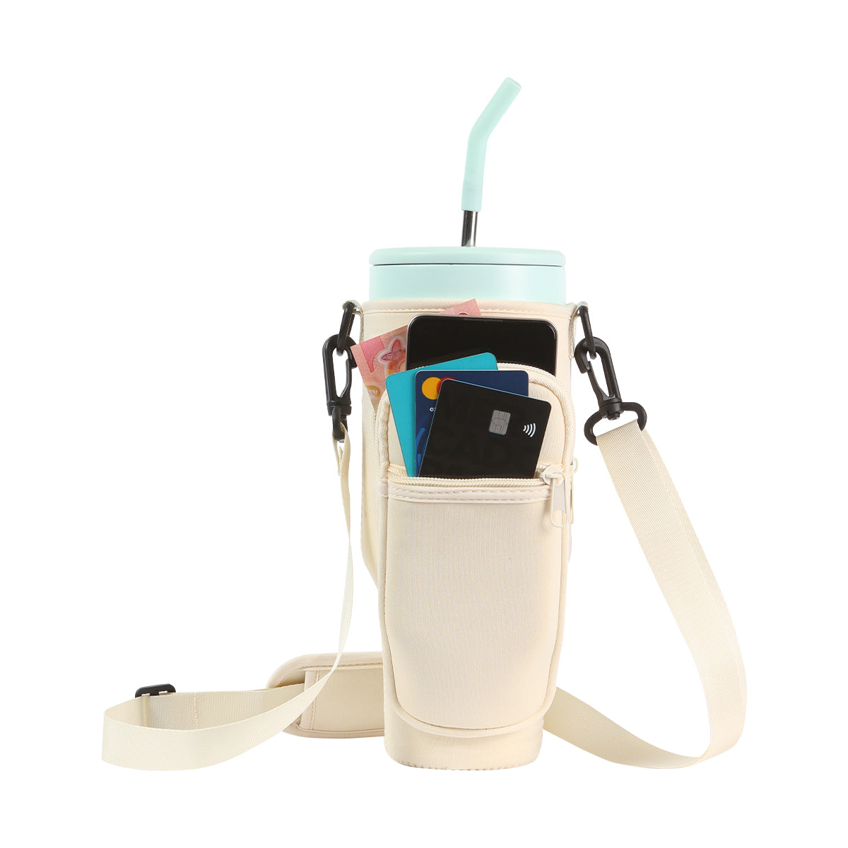 esta bolsa para termo presenta una estructura flexible y acolchada, fabricada en neopreno, que proporciona protección a tu termo y resistencia en el momento de transportarlo. su diseño está pensado para termos con mango y con capacidad de 1200 ml (40 oz), ofreciendo un ajuste adecuado y estable. incorpora una correa ajustable firmemente integrada para un transporte cómodo, así como una bolsa frontal con dos compartimentos, diseñada para mantener seguros objetos personales pequeños. es ideal para transportar y proteger termos de gran capacidad, facilitando su traslado en actividades diarias, al aire libre o durante desplazamientos prolongados.