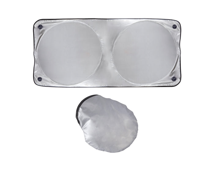 parasol de auto plegable, evita que el interior se caliente por exposición del sol. incluye funda para guardar.
