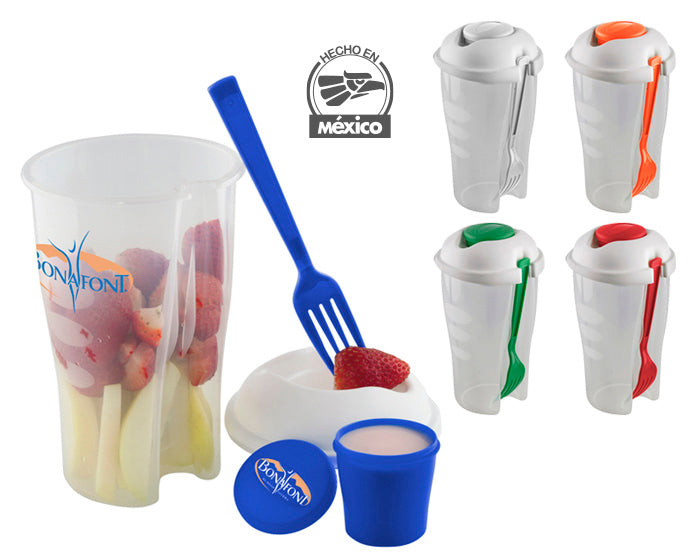 vaso transparente para ensalada con vaso para complementos y tenedor. cap. 700 ml. *bpa free.
