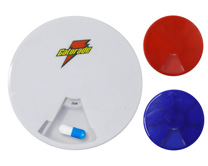 pastillero circular, impreso con los días de la semana para control de dosis medicinales.