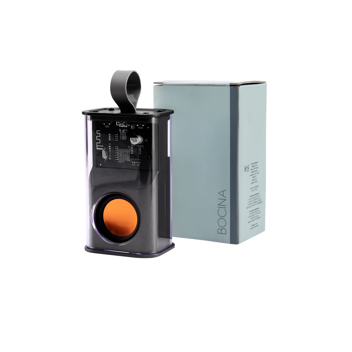 bocina bluetooth recargable. luz rgb con 7 efectos diferentes. reproducción de música por 3 horas aproximadamente. tiempo de carga 2-3 horas. alcance de conexión de 10 metros. batería de 500 mah. conexión tipo c. incluye cable auxiliar y asa de silicón para transportarla fácilmente.