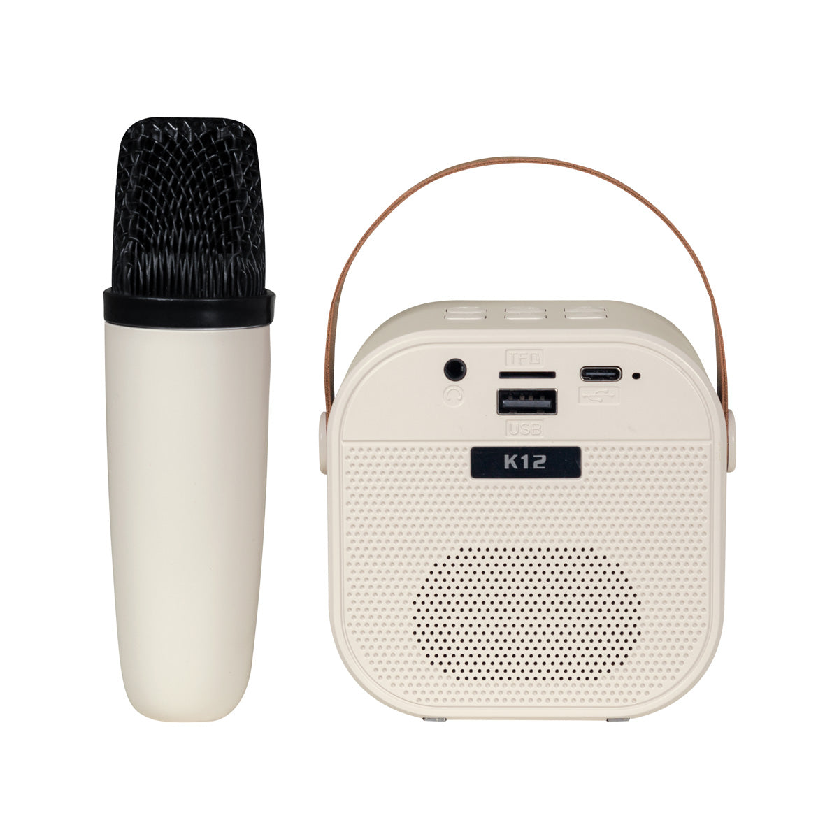 bocina con tecnología bluetooth 5.3. potencia 5 w. batería recargable con capacidad de 800 mah que otorga un tiempo de reproducción de 3 a 4 horas. alcance de conexión de 10 metros. incluye marco de luz led con botón independiente para cambiar o ajustar el efecto o color. además, agrega un micrófono que se sincroniza automáticamente a la bocina, lo que te permitirá cantar tus canciones favoritas y divertirte ya que se puede modificar la agudeza de las voces. puerto de conexión tipo c y usb, conexión para cable auxiliar 3.5 y ranura para tarjeta tf. incluye cable con conector tipo c y caja individual.