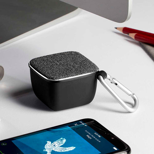 bocina bluetooth con batería recargable. reproducción de música de 3 hrs aproximadamente. incluye cable cargador usb y gancho para transportarlo fácilmente.