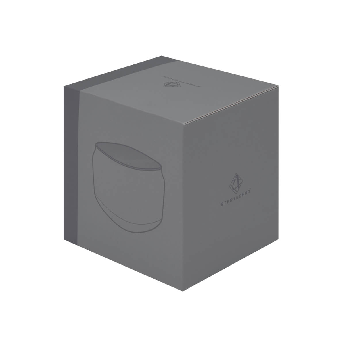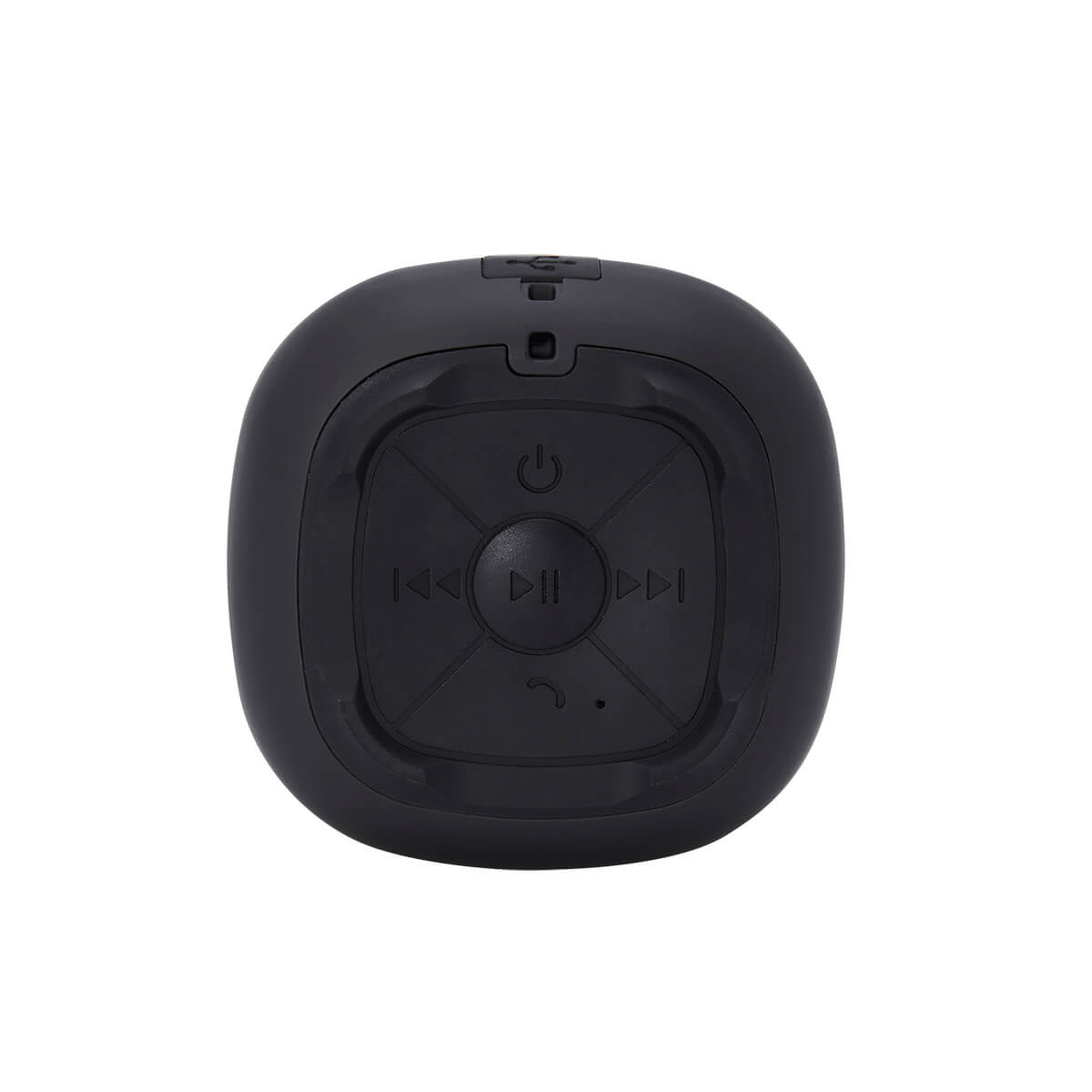 bocina bluetooth con batería recargable. tiempo de reproducción de 2 horas aproximadamente. controles integrados de llamada, volumen y reproducción de audio. incluye cable cargador usb.